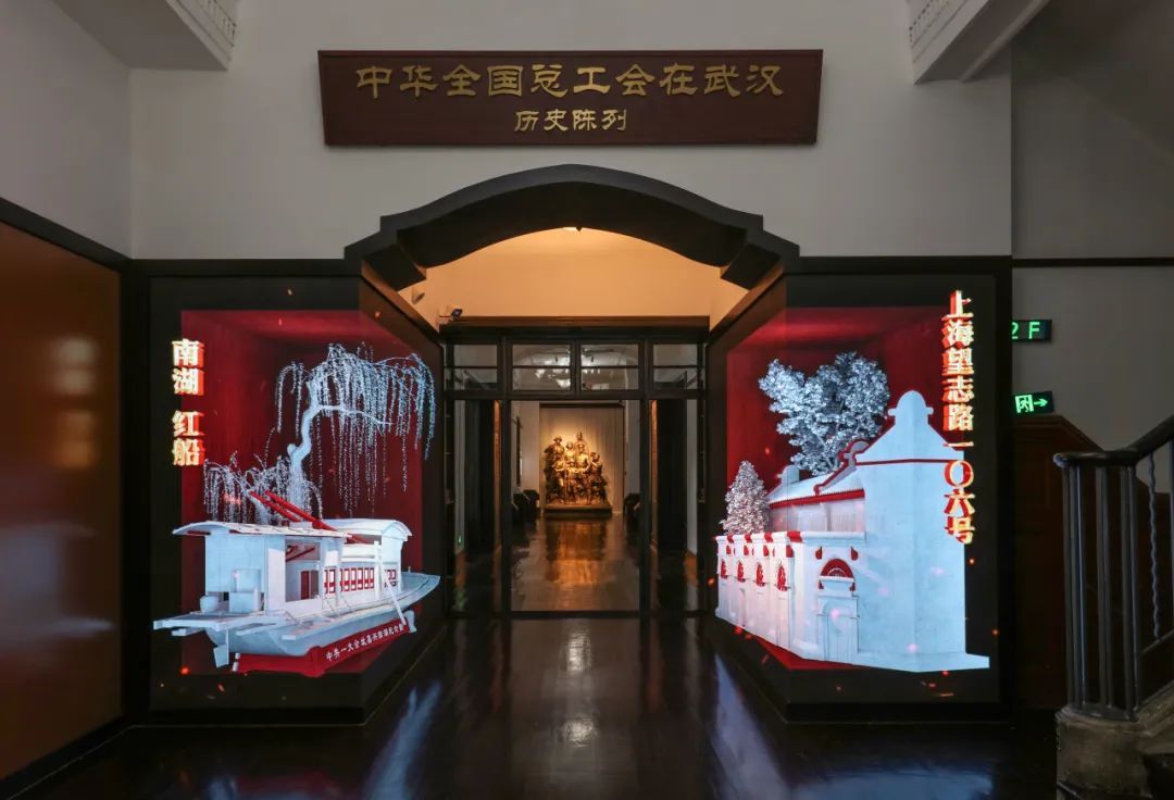 2022年11月17日,歷經(jīng)三年多修繕,漢口中華全國總工會舊址紀(jì)念館再度對公眾開放。圖為“中華全國總工會在武漢”歷史陳列展廳的序廳,用虛擬與現(xiàn)實(shí)交錯的裸眼3D光影秀,拉開了中華百年工運(yùn)史的大幕。紀(jì)念館以微縮景觀、沙畫、觸摸屏、浮雕、版畫、油畫等手法,再現(xiàn)大革命時(shí)期波瀾壯闊的工人運(yùn)動;對24處空間進(jìn)行復(fù)原陳列,大大提升了觀眾的沉浸式體驗(yàn)感。