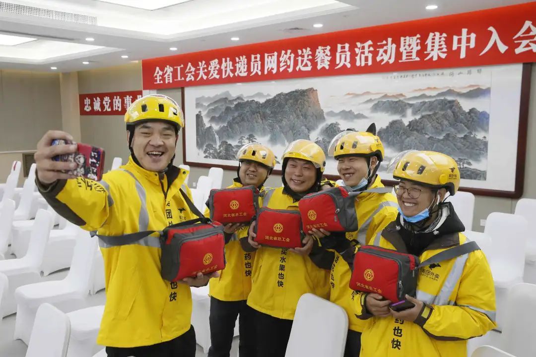 2022年10月13日,河北省總工會聯(lián)合省郵政管理局舉行全省工會關(guān)愛快遞員、網(wǎng)約送餐員活動暨集中入會儀式,15家快遞公司、網(wǎng)約送餐公司的一線代表收到了“愛心禮包”,感受到工會“大家庭”的關(guān)愛與溫暖。