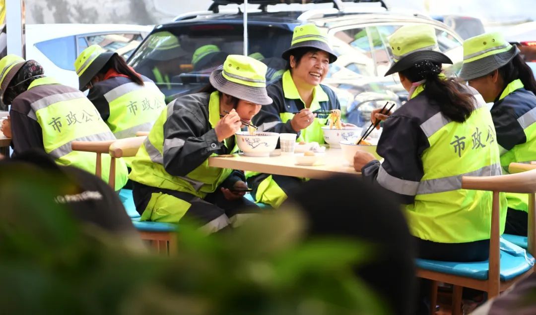《環(huán)衛(wèi)工人享用“愛心早餐”》