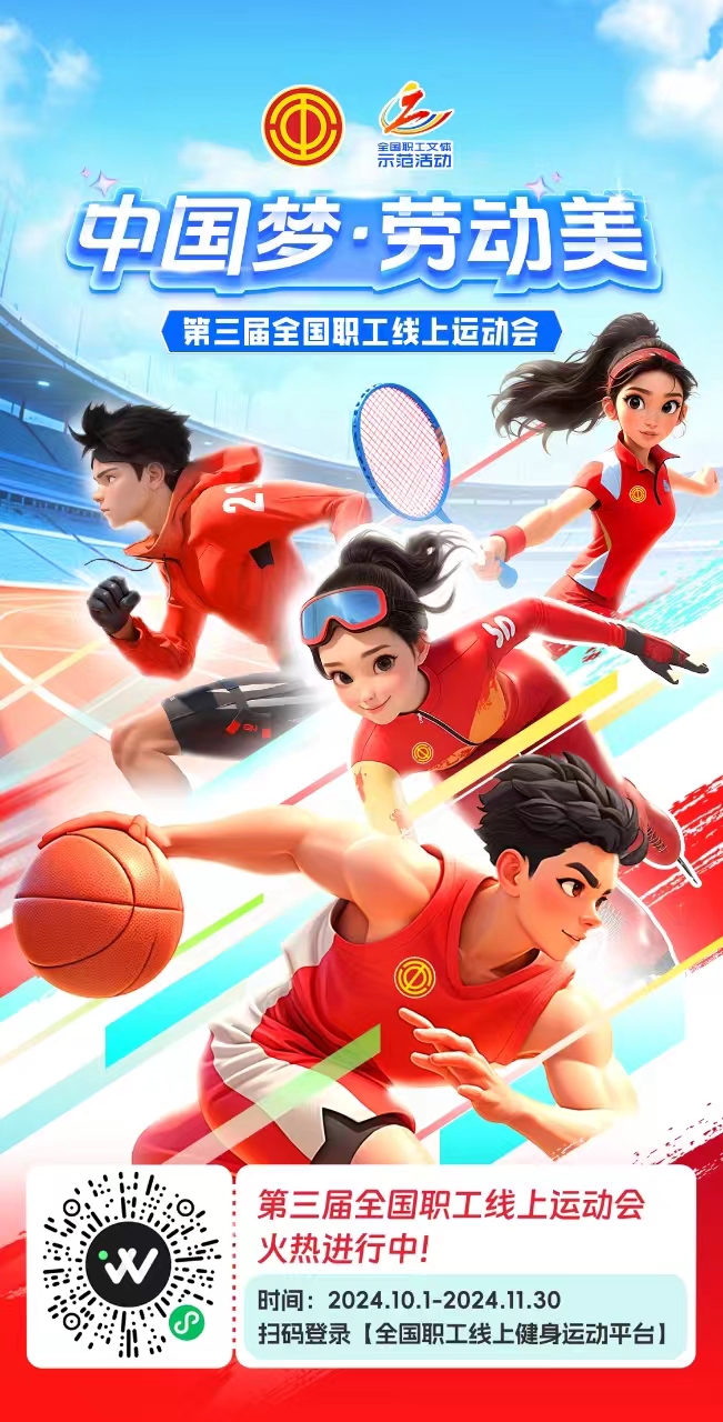 中工網(wǎng)訊(記者 王鑫)為深入學(xué)習(xí)貫徹黨的二十屆三中全會精神,引導(dǎo)職工群眾積極投身全民健身,全國職工文體示范活動——2024年“中國夢·勞動美”第三屆全國職工線上運動會于近期正式啟動。
