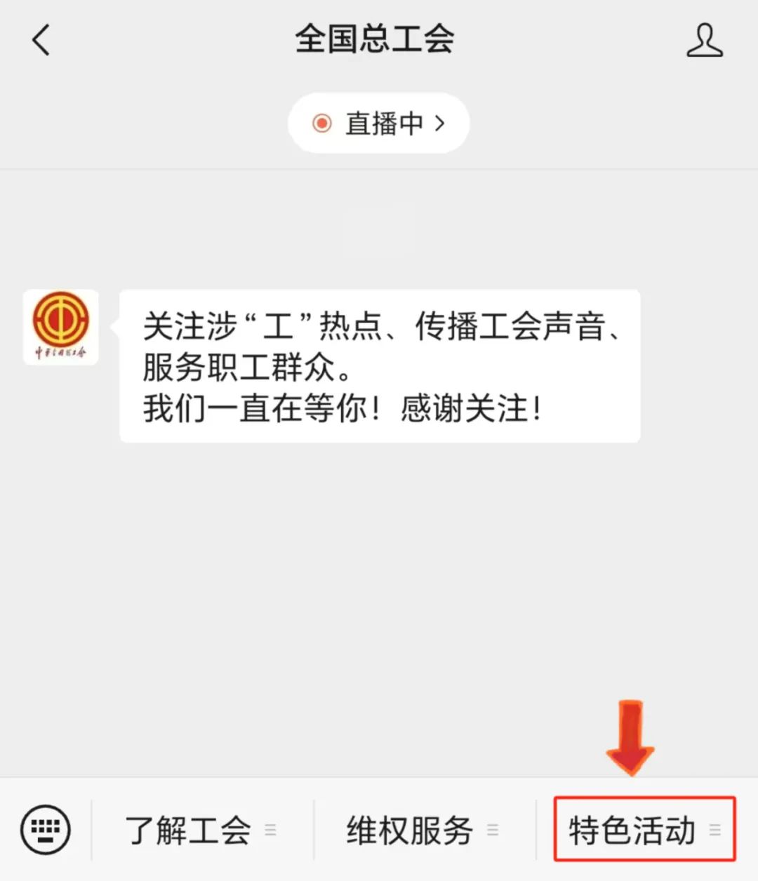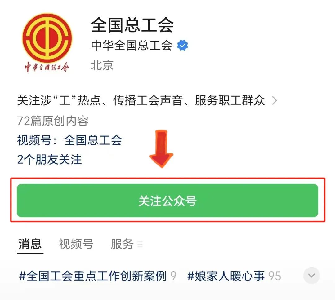 第一步 關(guān)注全國(guó)總工會(huì)微信公眾號(hào)
