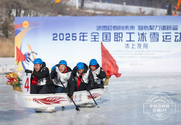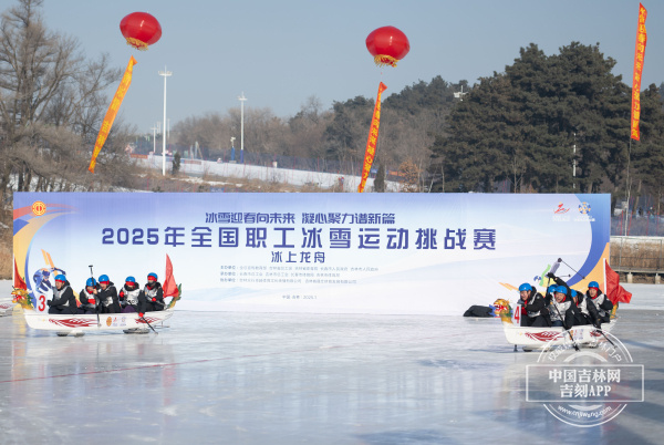 全國職工冰雪運動挑戰(zhàn)賽同樣設(shè)有冰上龍舟比賽項目。1月7日,該項目比賽在長春市激情開賽。