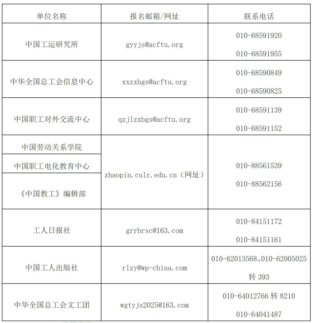 (1)中國勞動關(guān)系學(xué)院、中國職工電化教育中心、《中國教工》編輯部、工人日報社所有崗位: