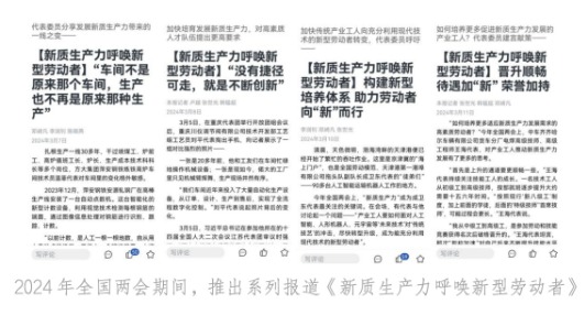 創(chuàng)新傳播方式、手段,探索運用人工智能等新技術(shù)、新應(yīng)用,打造“工”字特色原創(chuàng)精品,貼近受眾需求。全國兩會期間,創(chuàng)新推出融媒報道《面對人工智能,你有本領(lǐng)恐慌嗎?工人日報數(shù)字人記者把這個問題帶上全國兩會》?!吨泄仓醒雵鴦?wù)院關(guān)于深化產(chǎn)業(yè)工人隊伍建設(shè)改革的意見》發(fā)布后,及時推出融媒報道《數(shù)說“產(chǎn)改”成績單→》,挑選展現(xiàn)一線產(chǎn)業(yè)工人風(fēng)采的精美照片制作成“產(chǎn)改”成績海報,運用新媒體手段SVG動畫形式將12張海報動態(tài)展示,讓讀者沉浸式踏上“產(chǎn)改”之旅。