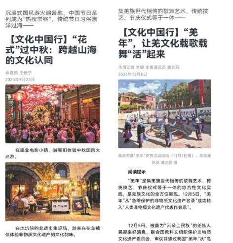 全媒體做好“文化中國行”主題宣傳報道,推出專題專欄,深入報道各地各部門推動文化傳承發(fā)展的生動實踐和創(chuàng)新經(jīng)驗,展示我國豐富的歷史文化遺產(chǎn)和中國道路的深厚文化底蘊,增強實現(xiàn)中華民族偉大復(fù)興的精神力量。