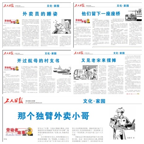 廣泛宣傳各行各業(yè)的先進人物,凝聚社會正能量,全媒體推出“最美職工”“勞動者之歌”“身邊的大國工匠”“勞動者故事”等專欄專題,在勞模人物版、農(nóng)民工周刊、社會新聞版等持續(xù)刊登典型人物、先進事跡,推出《暴雨中,他用身體為行人豎起安全警示牌》《“日行一善”讓城市更有溫度》《與時間賽跑挽救生命》等大量報道,謳歌美好心靈,弘揚社會正氣。