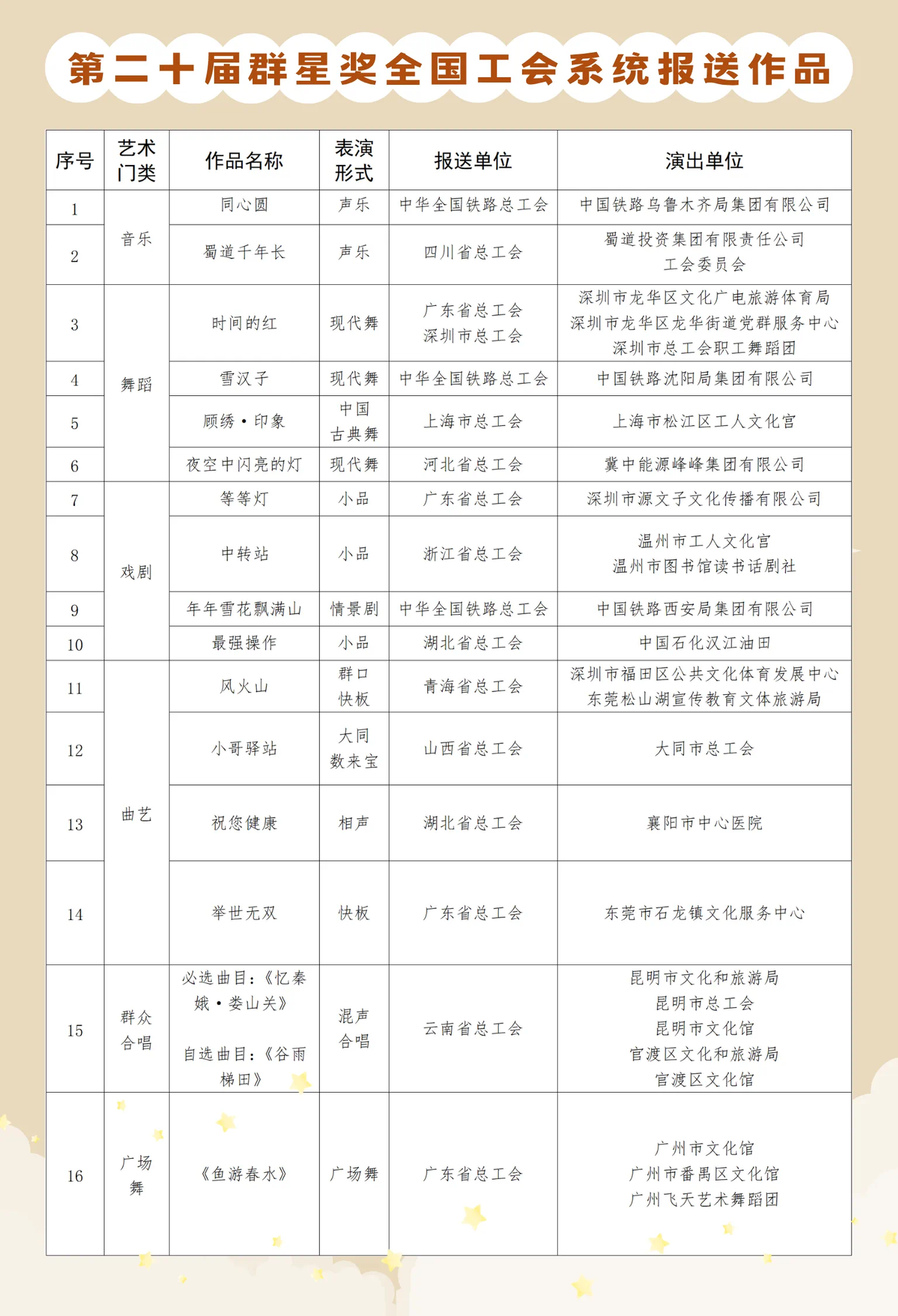 附:第二十屆群星獎全國工會系統(tǒng)報送作品