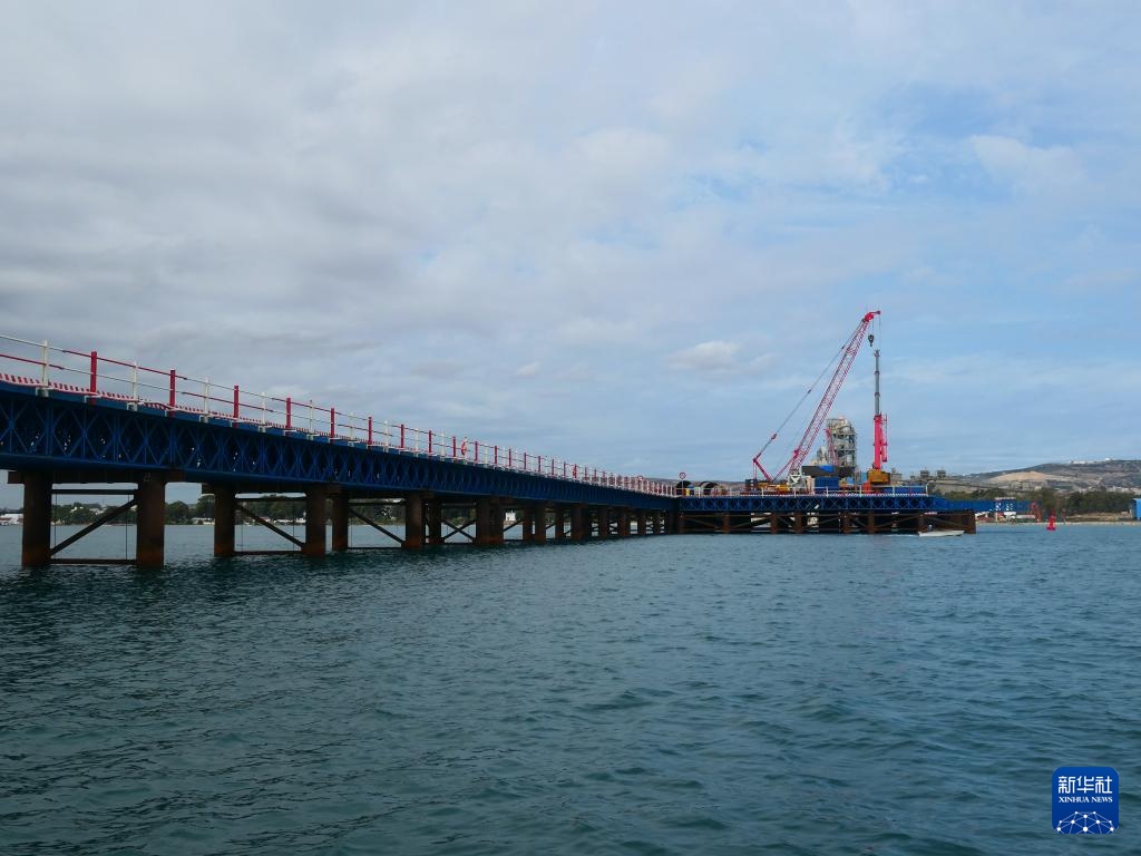 這是9月25日在突尼斯比塞大市拍攝的比塞大大橋棧橋及鋼結(jié)構(gòu)施工平臺(tái)。新華社記者 黃靈 攝