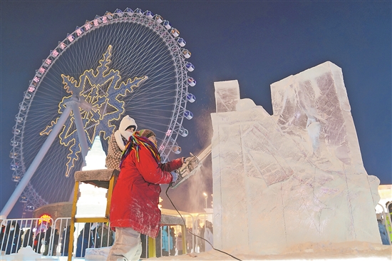 當日,為期3天的第35屆中國·哈爾濱國際冰雕比賽在哈爾濱冰雪大世界園區(qū)開賽。來自世界各地的30余支參賽隊伍同場競技,切磋冰雕技藝。