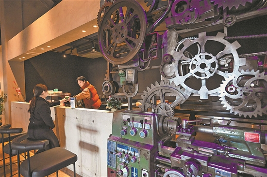 1月3日,產(chǎn)業(yè)會(huì)客廳內(nèi)的一家工業(yè)風(fēng)咖啡店在試營業(yè)中。