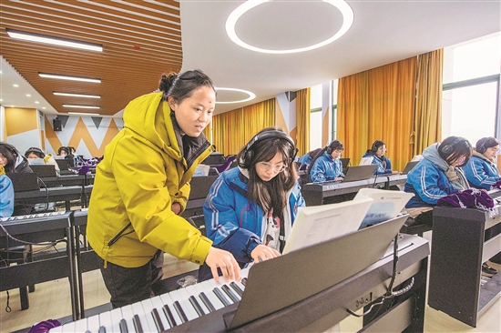 1月3日,安徽省蕪湖市繁昌區(qū)蕪湖機(jī)械工程學(xué)校的實訓(xùn)基地,學(xué)生在進(jìn)行鋼琴樂理知識訓(xùn)練。近年來,繁昌區(qū)大力發(fā)展現(xiàn)代職業(yè)教育,強(qiáng)化辦學(xué)特色,推進(jìn)產(chǎn)教融合、校企合作,著力提升職教學(xué)生的就業(yè)水平和適崗能力。本報通訊員 肖本祥 攝