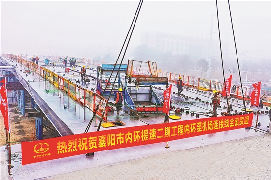 1月3日,隨著最后一片鋼箱梁精準(zhǔn)吊裝到位,由中鐵上海工程局集團(tuán)承建的襄陽市內(nèi)環(huán)提速改造二期工程五標(biāo)項目內(nèi)環(huán)至襄陽機(jī)場連接線主線橋全面貫通,標(biāo)志著工程朝著通車運營目標(biāo)又邁進(jìn)了一步,再度刷新襄陽城區(qū)“半小時交通圈”建設(shè)進(jìn)度。