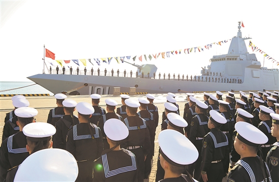 我國自主研制的055型萬噸級驅(qū)逐艦首艦?zāi)喜灇w建入列(資料照片)。
