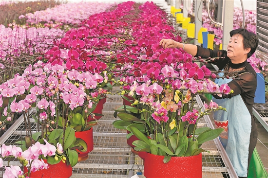 隨著春節(jié)臨近,靈山街道花卉大棚里一片繁忙,種植戶忙著管護和外銷花卉。