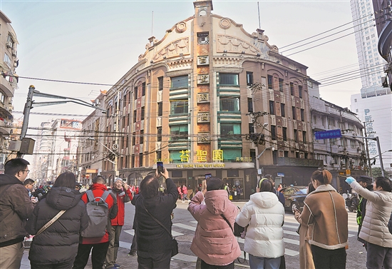 圖為1月9日,市民游客在拍攝黃河路上的苔圣園酒家。據(jù)說苔圣園酒家是劇中至真園的原型,是黃河路上標(biāo)志性的本幫菜館之一。