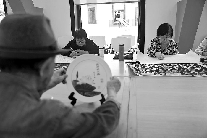 近日,在浙江省嘉善縣姚莊鎮(zhèn)沉香村,老人們?cè)谝惶庰B(yǎng)老活動(dòng)中心繪畫。近年來,姚莊鎮(zhèn)依靠地域優(yōu)勢(shì),圍繞養(yǎng)老服務(wù)、生態(tài)綠色、田園牧歌主題,探索鄉(xiāng)村養(yǎng)老新模式。老人們?cè)谶@里不僅能感受到“最愛是農(nóng)家,竹籬茅舍出青黃”的田園風(fēng)光,還可以通過定期培訓(xùn),享受參與式、互動(dòng)式養(yǎng)老服務(wù),樂在其中。本報(bào)記者 王偉偉 攝