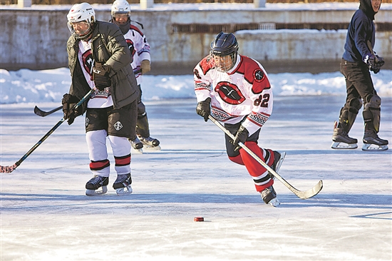 寒冬時(shí)節(jié),眾多冰球愛好者來到沈陽勞動(dòng)公園冰場(chǎng)享受冬日運(yùn)動(dòng)的快樂。圖為近日冰球愛好者在沈陽市勞動(dòng)公園人工湖上打冰球。