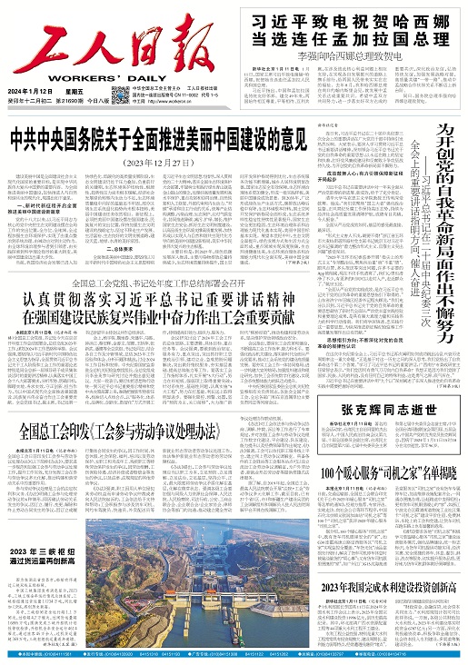工人日?qǐng)?bào) 2024年01月12日 星期一