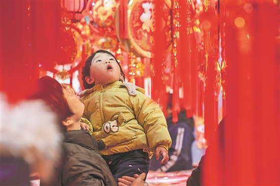 1月13日,在江蘇揚(yáng)州市曲江小商品批發(fā)市場,市民在選購春節(jié)飾品。春節(jié)臨近,人們在傳統(tǒng)民俗活動中體驗節(jié)日習(xí)俗喜迎新春佳節(jié)。新華社發(fā)(齊立廣 攝)