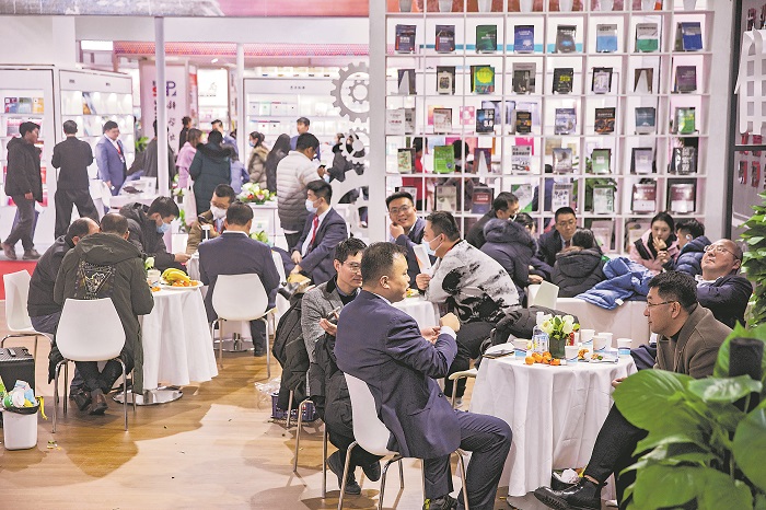 1月11日,2024北京圖書訂貨會現(xiàn)場,參展的圖書經(jīng)銷商在一起交流。本報記者 王偉偉 攝