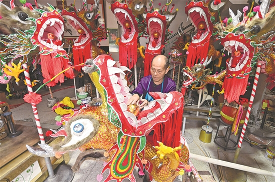 1月16日,在廣西賓陽縣賓州鎮(zhèn)三聯(lián)街,鄒玉特在裝龍珠。