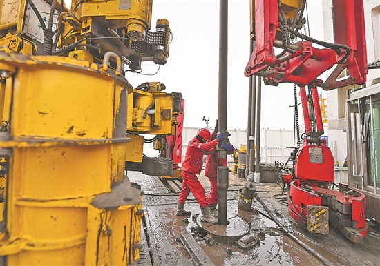 2月2日,在位于“死亡之海”新疆塔克拉瑪干沙漠腹地的深地塔科1井,工作人員在協(xié)同機(jī)械進(jìn)行鉆井作業(yè)。