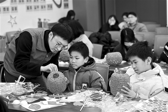 在東林鎮(zhèn)東華村黨群服務(wù)中心開辦的寒假托管班上,黨員志愿者指導(dǎo)孩子們制作新年燈籠。近日,浙江省湖州市吳興區(qū)東林鎮(zhèn)總工會(huì)聯(lián)合社區(qū)教育中心舉辦“真情相伴 童賀新春”關(guān)愛服務(wù)系列活動(dòng),讓孩子們?cè)谳p松愉快的氛圍中度過(guò)一個(gè)充實(shí)溫暖的寒假。新華社記者 徐昱 攝
