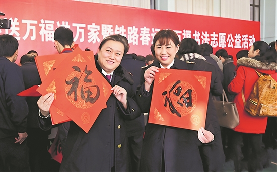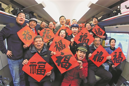 2019年1月19日,書(shū)法家一行乘坐列車迎春送“?!?。