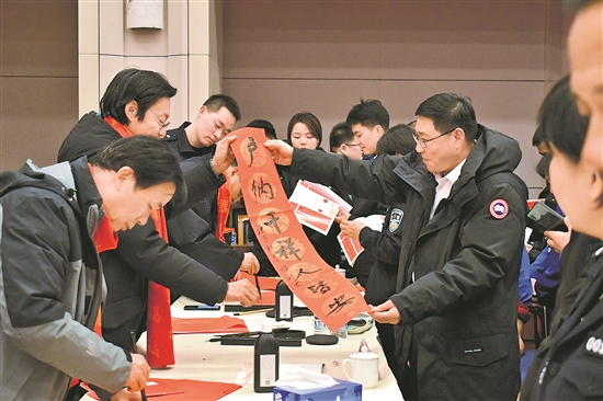 2016年、2017年、2018年……每一年的元旦春節(jié)期間,廣大書(shū)法家、書(shū)法工作者都參與到這項(xiàng)志愿服務(wù)活動(dòng)中,秉持公益性和普惠性原則,發(fā)揮文化文藝工作培根鑄魂、守正明德的作用,傳播著中國(guó)價(jià)值觀念,豐富了人民文化生活,更增強(qiáng)了職工群眾的精神力量,啟迪思想、陶冶情操、溫潤(rùn)心靈。