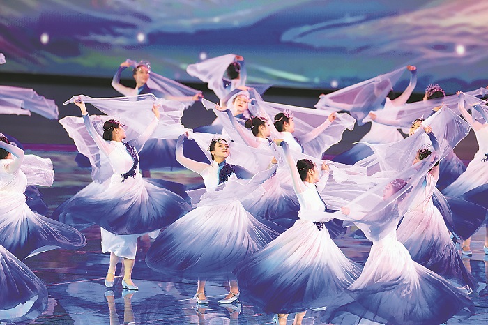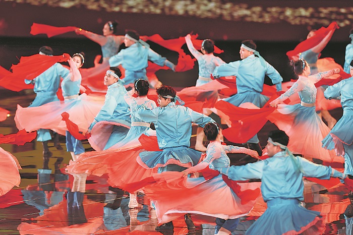 2月17日,第十四屆全國(guó)冬季運(yùn)動(dòng)會(huì)開(kāi)幕式在內(nèi)蒙古呼倫貝爾市海拉爾區(qū)內(nèi)蒙古冰上運(yùn)動(dòng)訓(xùn)練中心舉行。圖為開(kāi)幕式表演。本報(bào)記者 蔚可任 攝