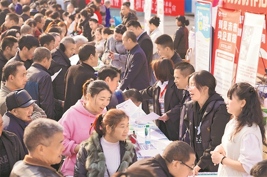 2月18日,貴州省赤水市“2024年‘春風(fēng)行動’暨東西部勞務(wù)協(xié)作招聘會”現(xiàn)場人潮涌動。當(dāng)日,赤水市人社局舉辦招聘會,通過“線上+線下”搭建返鄉(xiāng)人員就業(yè)橋梁,幫助群眾“淘”出心儀的崗位,實現(xiàn)“家門口就業(yè)”。本報通訊員 張鵬 茍煉煒 攝