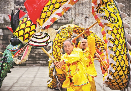 據(jù)了解,清光緒年間,瀘縣藝人將原有的“草把龍”改成彩龍,到1919年,出現(xiàn)了第一條雨壇彩龍。自此,每逢年節(jié),當(dāng)?shù)匕傩斩家璨数垺?006年,瀘州雨壇彩龍被列入第一批國家級非物質(zhì)文化遺產(chǎn)名錄。