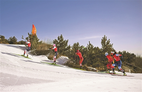 題圖:2月19日,參賽選手在越野滑雪公開組女子團體短距離(自由技術(shù))決賽中。 新華社記者 黃博涵 攝
