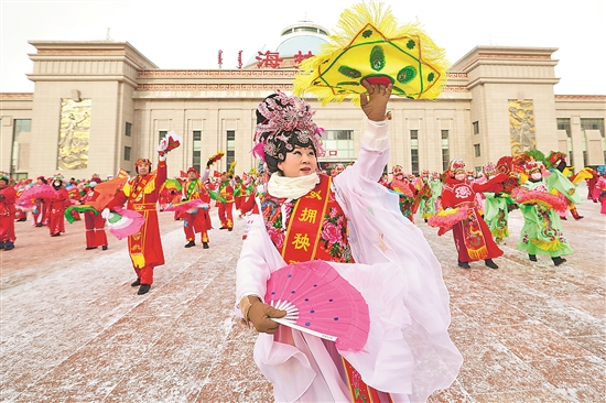 2月19日,呼倫貝爾市海拉爾區(qū)老年人體育協(xié)會舉辦的2024年全民健身大拜年秧歌聯(lián)動活動在海拉爾站前拉開帷幕。本報記者 蔚可任 攝