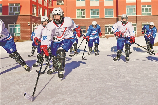 2月20日,呼倫貝爾市海拉爾區(qū)南開路中學的冰球隊員進行寒假集訓。本報記者 蔚可任 攝