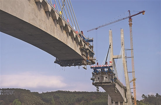 當(dāng)日,在廣西南寧,南深高鐵南玉段六律邕江特大橋建設(shè)現(xiàn)場(chǎng)一片繁忙,建設(shè)者加緊施工推進(jìn)進(jìn)度,力爭(zhēng)項(xiàng)目早日建成。
