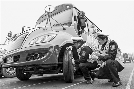 2月20日,浙江省湖州市德清縣公安局交警大隊下渚湖中隊對轄區(qū)內(nèi)的校車開展專項安全檢查,重點檢查校車車況、逃生裝置、滅火器、破窗錘等安全設(shè)施的性能,及時排除隱患,確保學(xué)生新學(xué)期乘車安全。