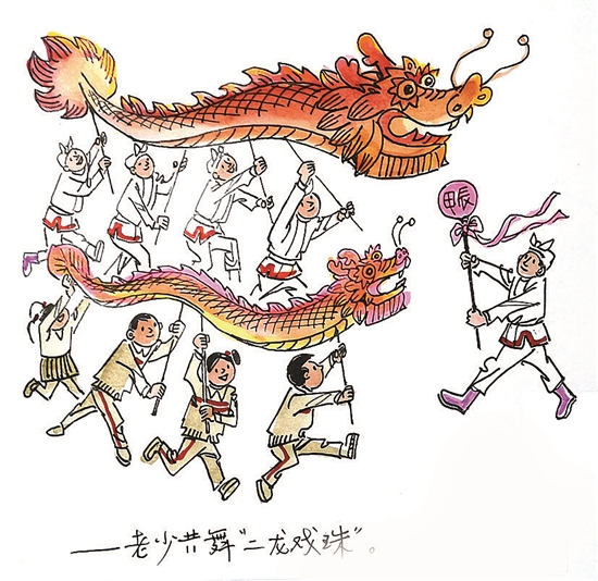 ——老少共舞“二龍戲珠”。