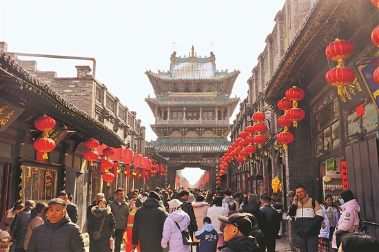 2024年春節(jié)期間,山西省平遙縣平遙古城景區(qū)內(nèi)人流如潮。據(jù)統(tǒng)計(jì),2月10日至17日,平遙古城共接待游客626434人次,較2023年春節(jié)同期增長(zhǎng)131.75%。假期期間,平遙古城推出了豐富多彩的年俗文化活動(dòng),吸引了中外游客全方位、多視角、沉浸式體驗(yàn)中華優(yōu)秀傳統(tǒng)文化。本報(bào)實(shí)習(xí)生 孫鑫儀 攝