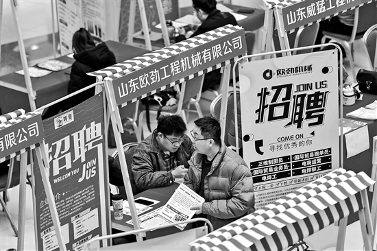 春節(jié)過后,各地組織多場招聘活動,助力企業(yè)復(fù)工復(fù)產(chǎn)和求職者就業(yè)。圖為求職者在山東省青州市舉辦的新春企業(yè)推介暨人才招聘會上了解崗位信息。新華社發(fā)(王繼林 攝)