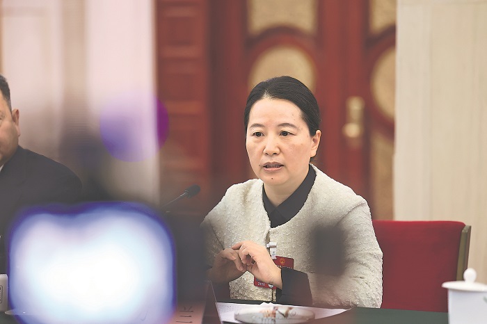3月6日,陜西師范大學西北歷史環(huán)境與經(jīng)濟社會發(fā)展研究院副院長方蘭代表在陜西代表團開放團組會議上發(fā)言。本報記者 王偉偉 攝