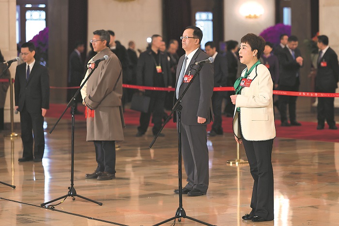 3月7日,全國政協(xié)十四屆二次會議第二場“委員通道”在北京人民大會堂舉行,重慶市民政局副局長鄧琳委員回答記者提問。本報記者 吳凡 攝