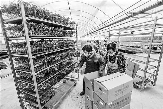 3月6日,在位于浙江嘉興桐鄉(xiāng)市高橋農(nóng)業(yè)科技產(chǎn)業(yè)園的中科康成數(shù)字化育苗車間內(nèi),工人把培育好的種苗裝箱。目前,該育苗基地年產(chǎn)2億株蔬菜、瓜果種苗,主要供應(yīng)長三角地區(qū)消費市場。