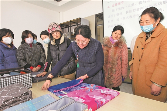3月13日,江蘇省徐州市工人文化宮,專業(yè)老師在給學(xué)員講解整理收納技能。