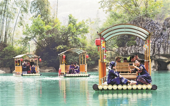 近年來(lái),貴州省黔南布依族苗族自治州羅甸縣沫陽(yáng)鎮(zhèn)大井村依托大小井景區(qū)獨(dú)特的自然資源,通過(guò)整治河道、推行水上觀光、鼓勵(lì)村民開(kāi)展農(nóng)家樂(lè)及鄉(xiāng)村民宿等舉措,大力發(fā)展鄉(xiāng)村旅游,既壯大村集體經(jīng)濟(jì),又增加村民收入。