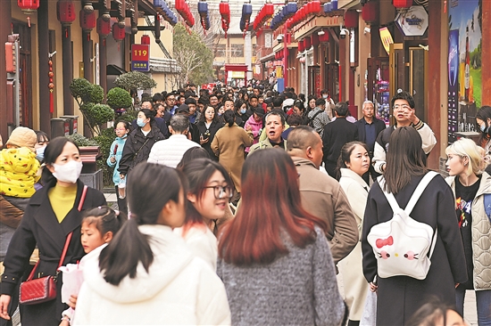 3月16日,游客在甘肅省天水市天水古城舉辦的“天水麻辣燙吃貨節(jié)”現(xiàn)場(chǎng)參觀游覽。