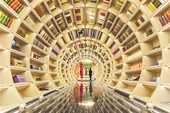 近日,河南鄭州,一家高顏值書店打造了一條“書海隧道”,這條圓形的通道由滿滿的書架組成。視覺中國 供圖