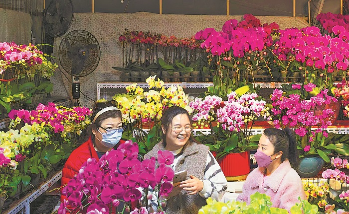 3月17日,北京的一家鮮花市場,消費者正在選購花卉產(chǎn)品。