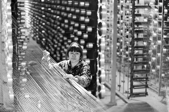 3月17日,浙江杭州臨安區(qū)天目山鎮(zhèn)一家紡織企業(yè),現(xiàn)代化生產(chǎn)設(shè)備高速運(yùn)轉(zhuǎn),工人穿梭其間趕制訂單。