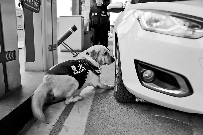 這天,迎春牽著警犬在某口岸例行搜車。云寶圍著車、伸著鼻子嗅了一圈,快走到車尾時(shí),突然折返回來,湊近左前方的車輪聞了又聞,“啪”的一聲臥了下來。